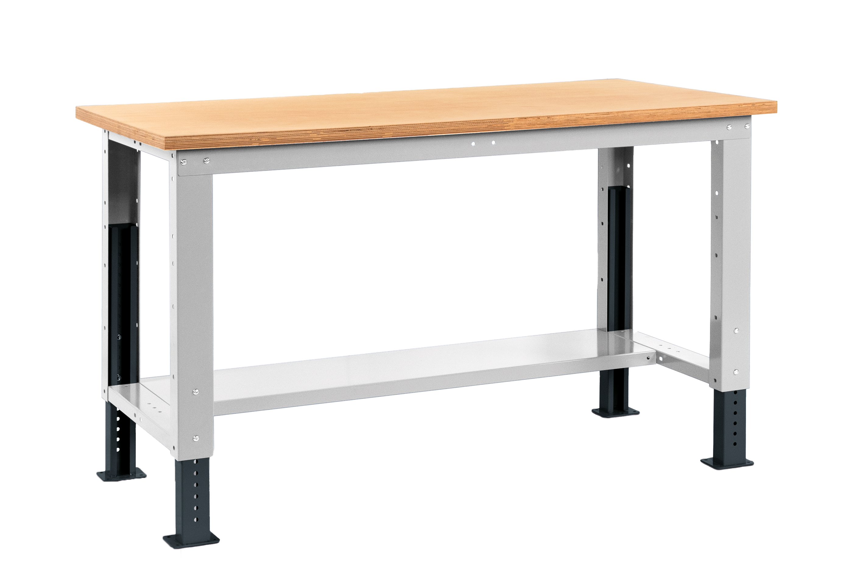 Etabli m?tallique Fortis avec plateau bois en multipli h?tre ?paisseur 30 mm<br>Structure fabriqu?e en t?le d?acier de premi?re qualit?<br>Plateau supportant une charge de 1000 kg (C.U.R) <br>Pieds r?glables en hauteur de 732 ? 1107 mm (au pas de vis de 25 mm)<br><br>Avec 1 demi-?tag?re m?tallique inf?rieure de d?pose renforc?e L.1260*P.300*H.35 mm (charge maxi de 100 kg)<br><br>Coloris Gris clair Ral 7035 + Gris anthracite Ral 7016<br><br>Di
