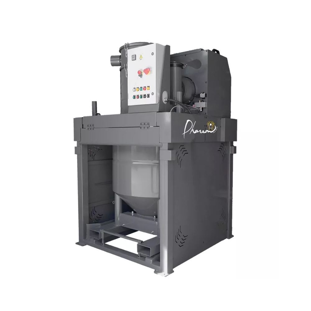 The filtration system is based on an antistatic TEFLON-treated polyester bag filter , class M 1µ, which guarantees optimal efficiency. This filter provides a filtering surface area of 120,000 cm².
