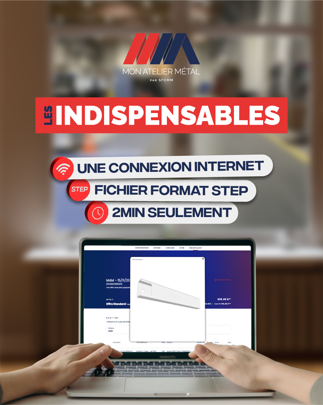 Mon Atelier Métal is the online platform designed by SFCMM for carrying out your quotes and online orders for metal parts.