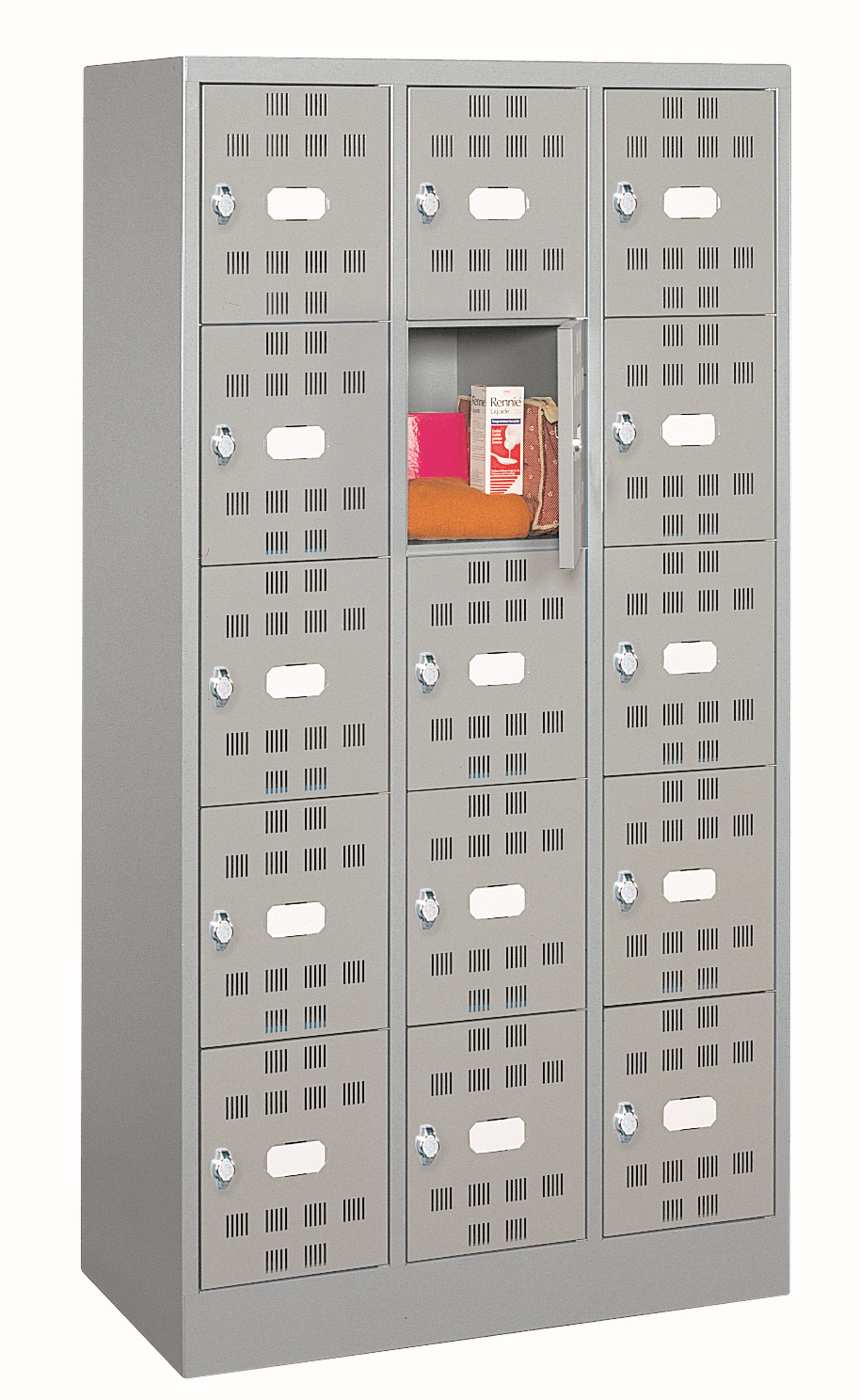 Vestiaire multicasiers sur 3 colonnes (avec 5 casiers dans la hauteur) <br>> Structure m?tallique soud?e.<br>> Portes avec loquet porte cadenas et porte-?tiquettes encastr?s. <br>> Peinture Epoxy coloris gris RAL 7035. <br><br>Points forts :<br>> Vestiaire soud? monobloc, livr? mont?. <br>> Conformit? norme NF 65760<br>> Double a?ration sur chaque case. <br><br>Domaines d'utilisation: <br>Ce vestiaire multi