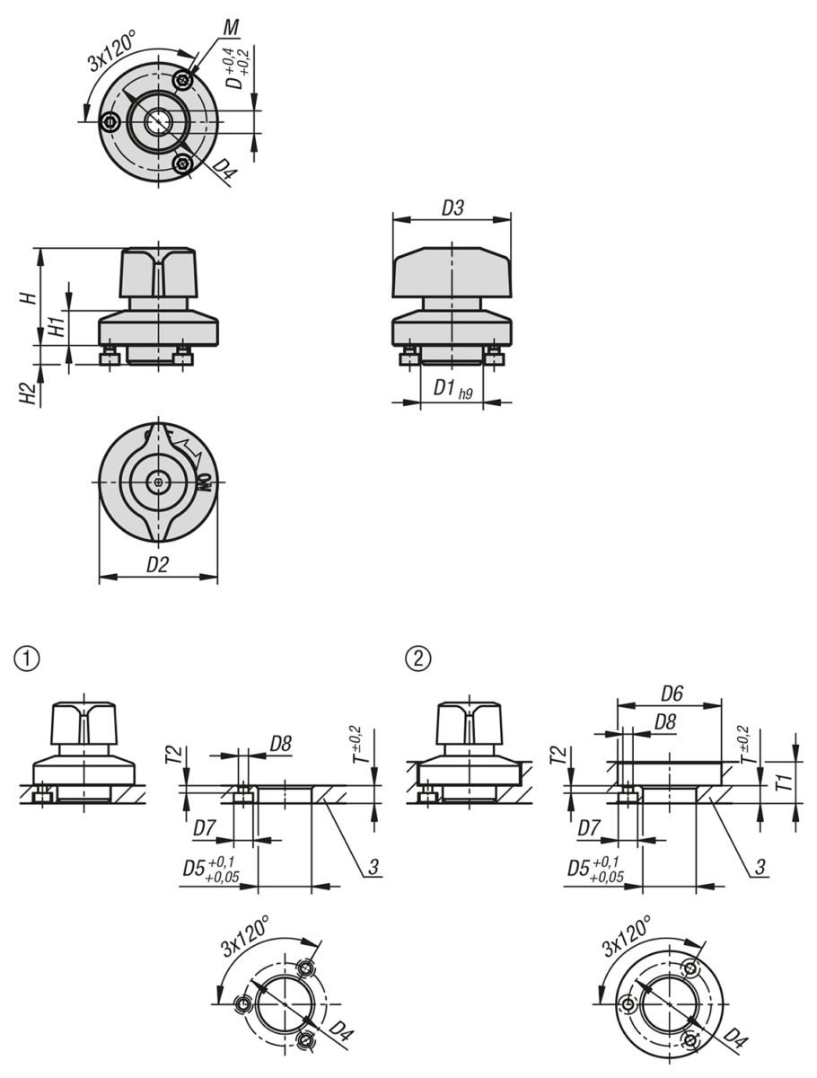 Option de montage 2 pour plaques d’épaisseur > 6 mm jusqu’à 14 mm.