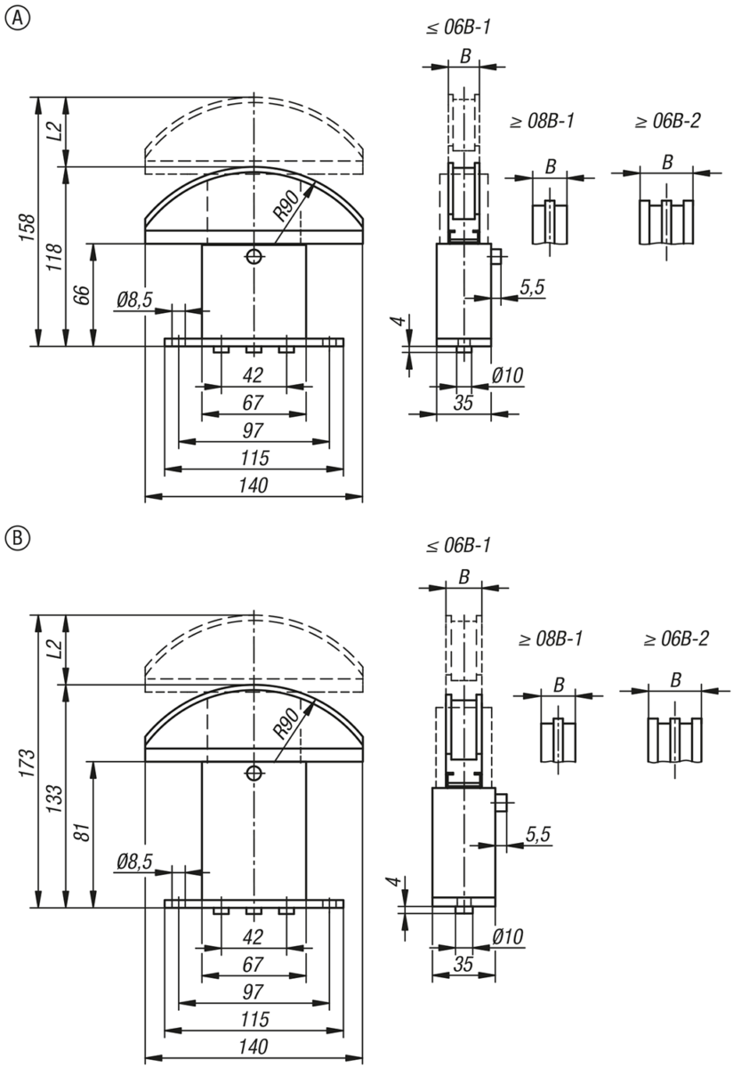 Tendeur de chaîne de taille 1, en inox à profil arqué