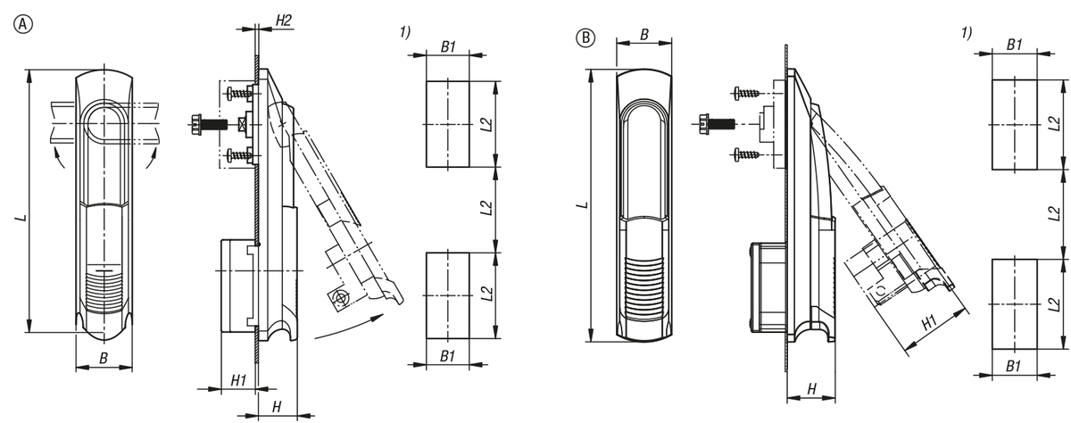 S’agissant de la forme B, les demi-cylindres profilés pour levier pivotant (05601)