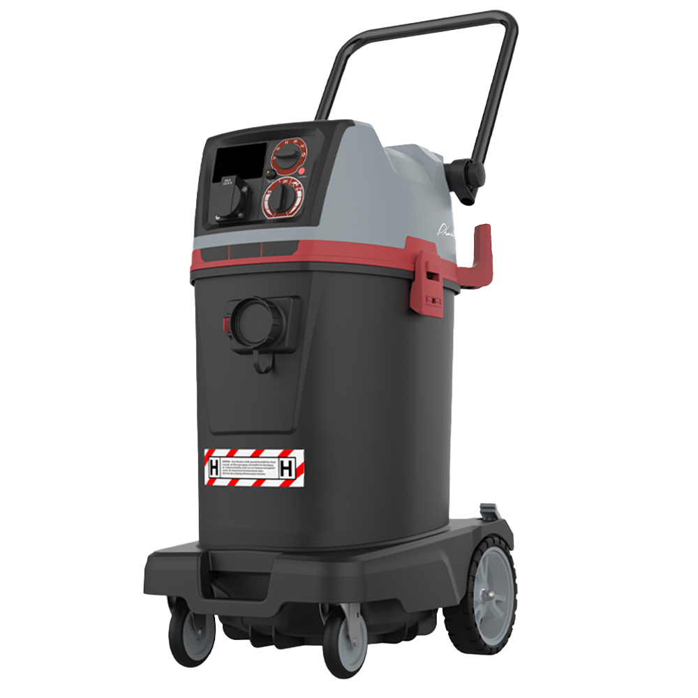 Un sac de récupération des poussières fermé, évitant toute remise en suspension et un filtre HEPA H14 d'une efficacité de 99,995 % sur les particules de 0,18 micron. L’aspirateur est donc adapté aux poussières dangereuses (bois, silice, peinture, amiante).