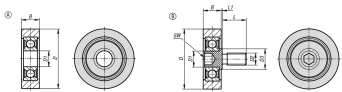 La bande de roulement est solidement moulée sur un roulement à billes. Le revêtement de la bande de roulement est composé de deux couches à partir du diamètre D = 40 mm.