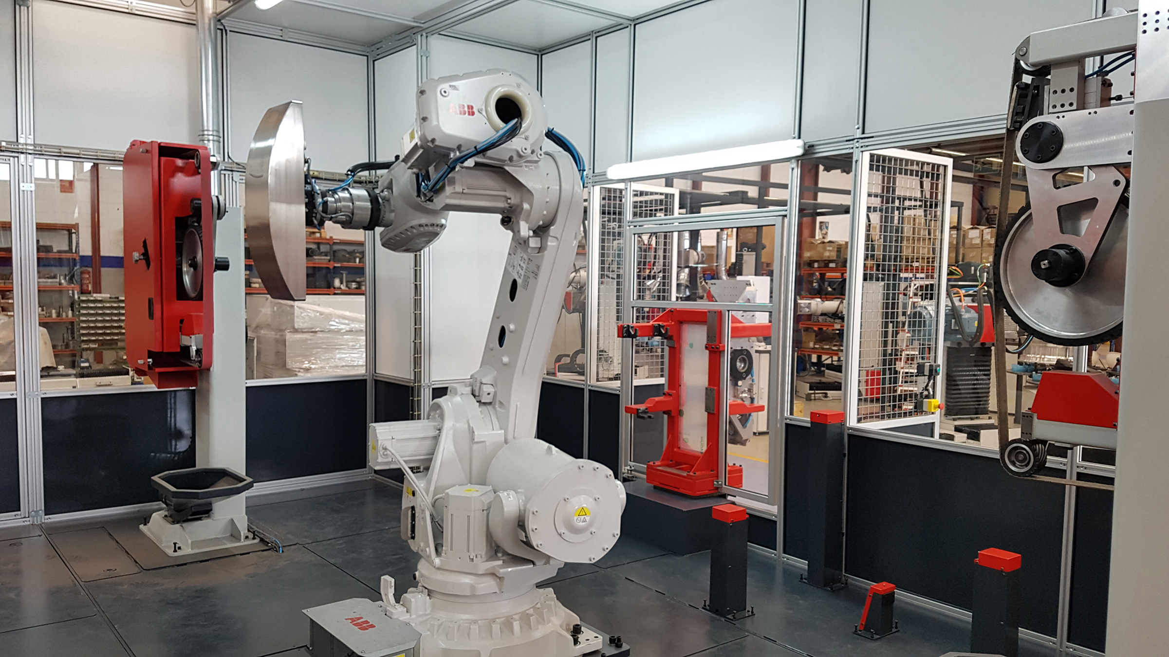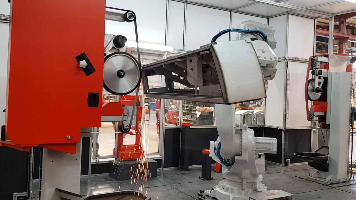 ROBOT CELL FOR THE DEBURRING, GRINDING AND SATIN FINISHING OF STREET FURNITURE (PARKING METER AND OTHERS) & METRO PASSENGER CONTROL PASS