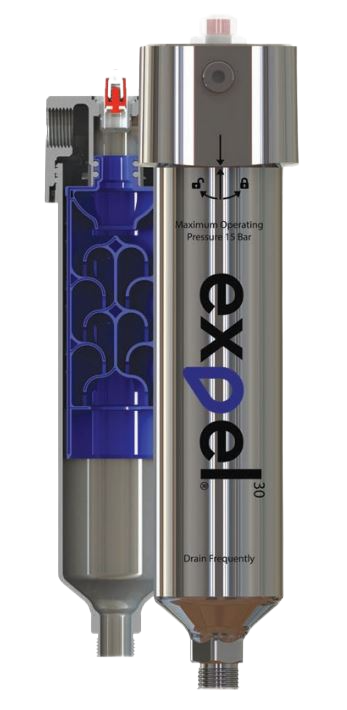 The Expel filter has been designed to maximize energy efficiency and reduce environmental impact. Its design does not retain contaminants from the compressed air, it “expels” them from the unit. It is a filter without filter elements. Typically, it would take up to three conventional compressed air filters to achieve the same air quality as a single Expel filter.