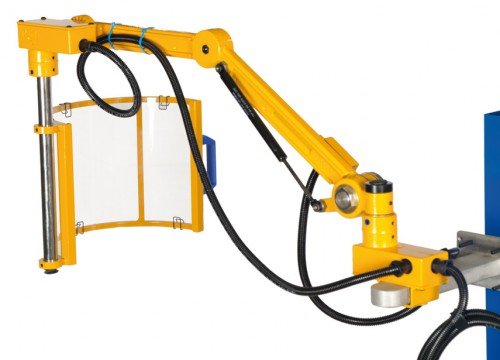 The two-piece arm allows the height and depth of the guard to be adjusted to your working position.