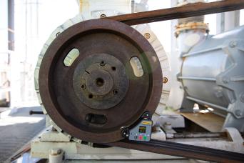 The laser transmitter is placed on one of the rollers and the detector on the other. Then the program guides the user through the installation of the units. The transmitter then generates a laser plane parallel to the reference roller.