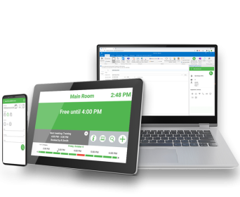 Use the Meeting4Display meeting room and office reservation software from your PC, your mobile, your tablet or on a reservation screen placed at the entrance to the office or room.