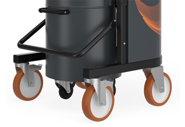 - Swivel, oil-resistant anti-marking wheels with parking brake.
