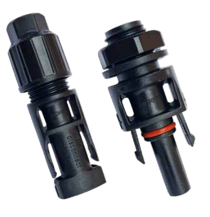 Morek's photovoltaic connectors are designed for long-term outdoor use and are compatible with MC-4 connections.