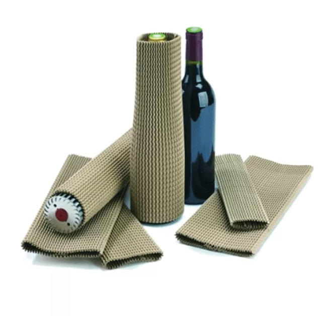 Made from expandable bi-corrugated cardboard, the cardboard sleeve adapts to the shape of the product and can be fully recycled.