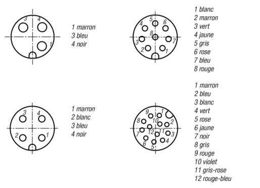 Wire identification according to DIN 47100 color code.