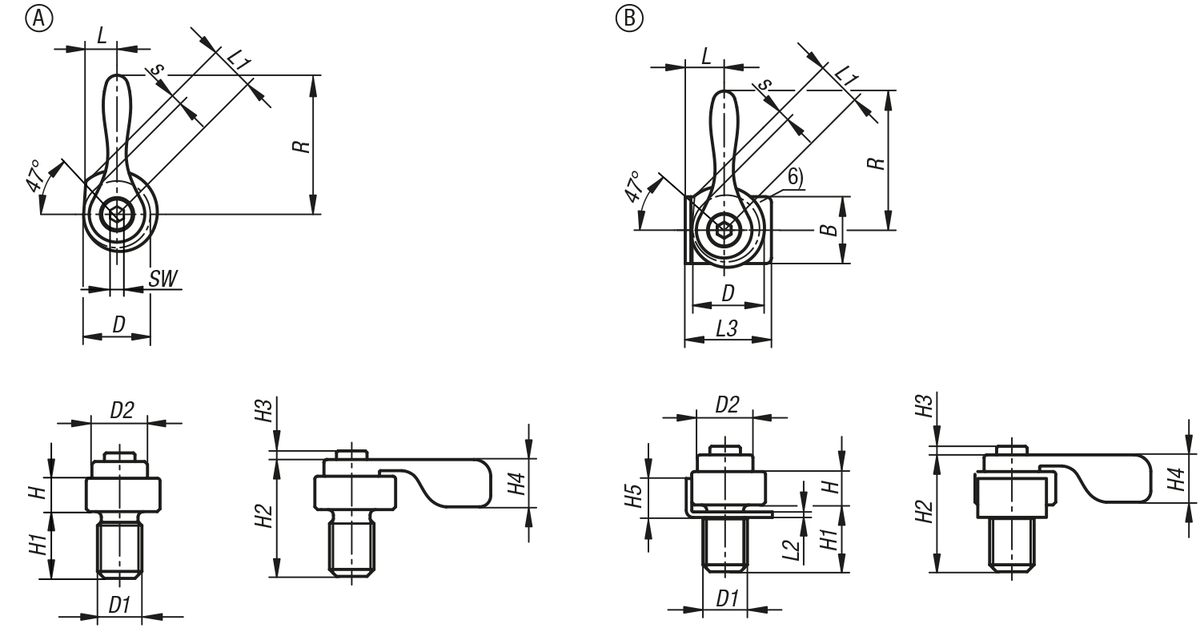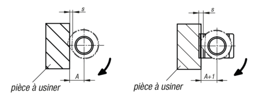 Dimension A refers to the distance between the workpiece and the center of the thread (clamping screw).