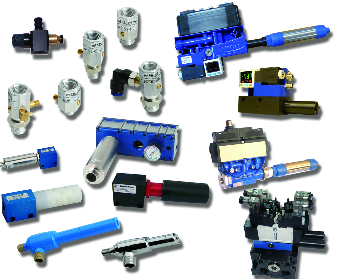 SAPELEM offers devices that use the Venturi effect to create a vacuum using only compressed air. Compressed air passes through a nozzle, which creates a low-pressure zone that draws in air or other fluids.