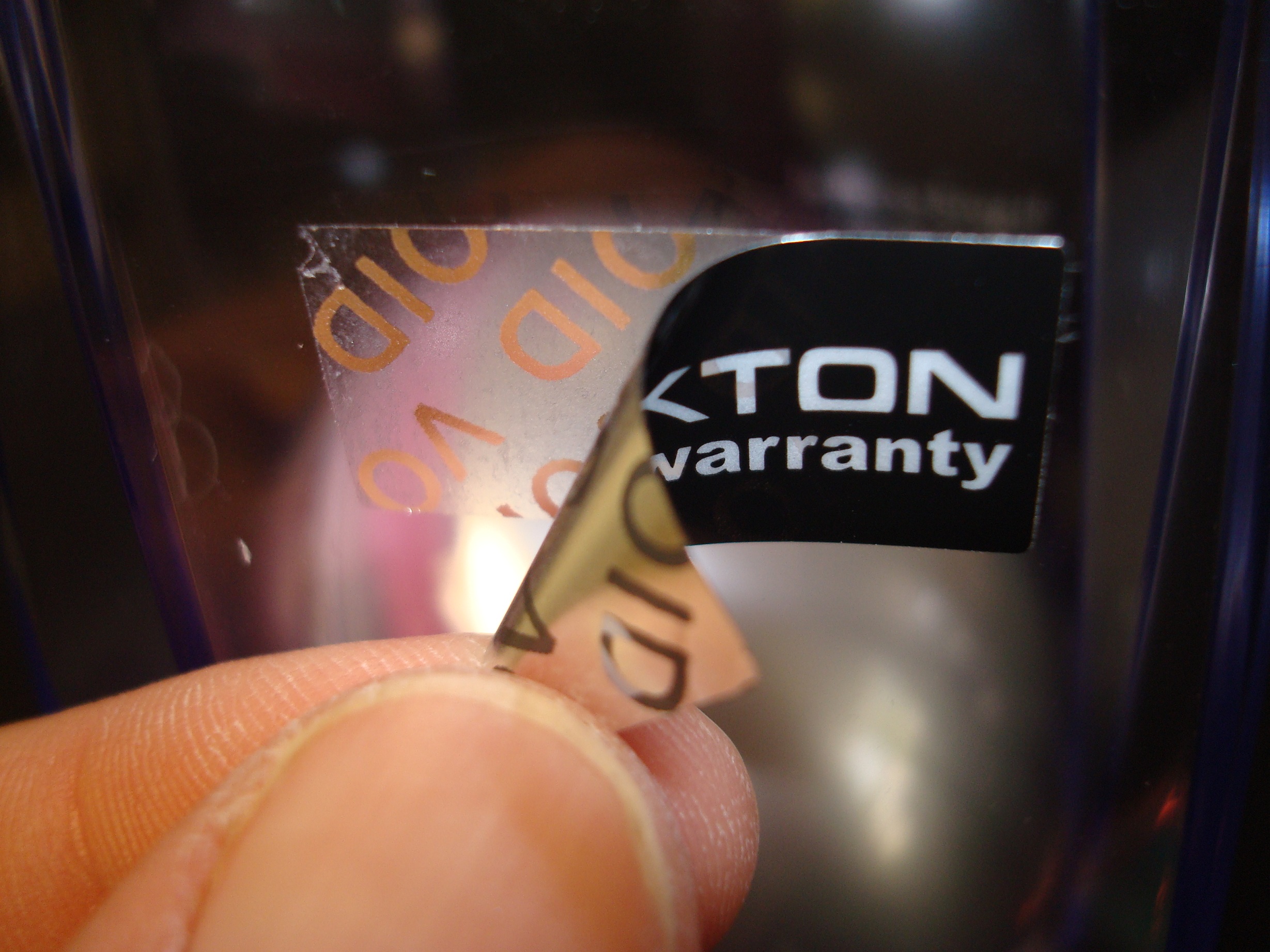 VOID label : The words "VOID" appear and security reasons are revealed if removed.