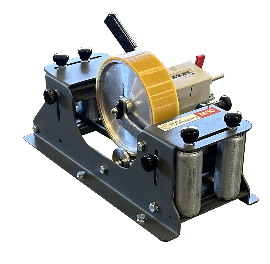 - Measuring wheel width 25 mm development 200 mm in grooved metal or polyurethane (for metal cables)