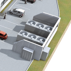 To reduce the noise of external equipment (cooling unit, unit heater, compressor, booster, extraction fan, hydraulic unit, transformer, screen, grinders, crushers) Allows a gain of 3 to 10 dB includes the following elements: calculation according to snow and wind rule, opening or sliding access doors, ventilation silencer, any other specific need