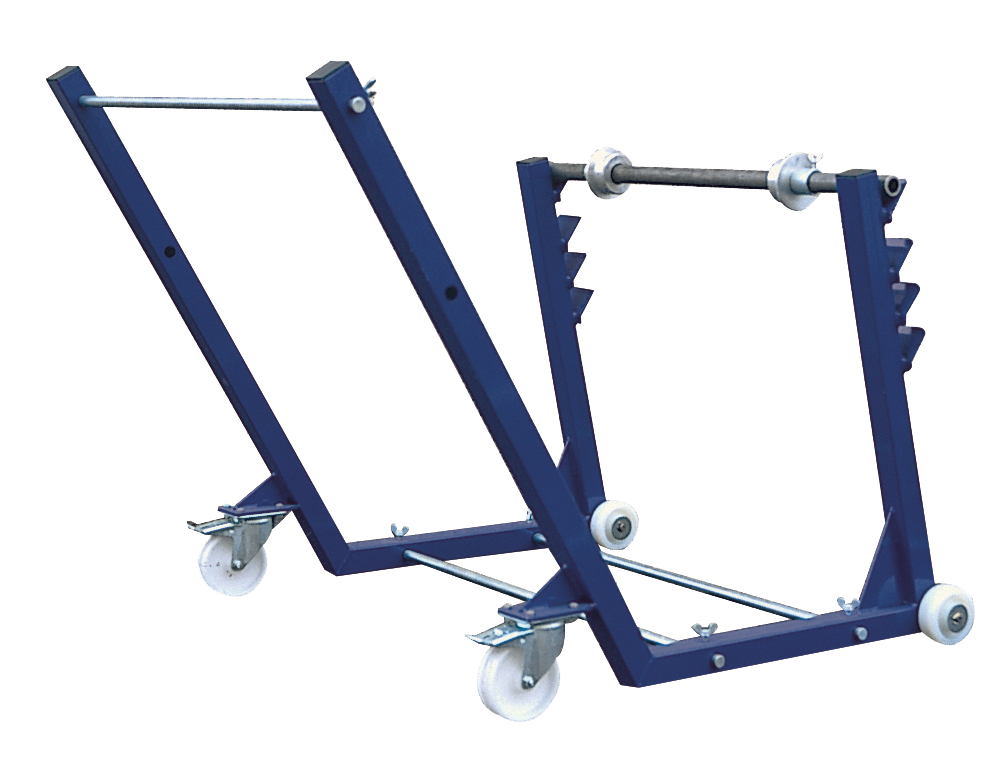 2 wheels with rubber tires Ø 250 mm (with brake). Unwinding axle Ø 60 mm (axle Ø 34 mm optional, code ST3-XCC).