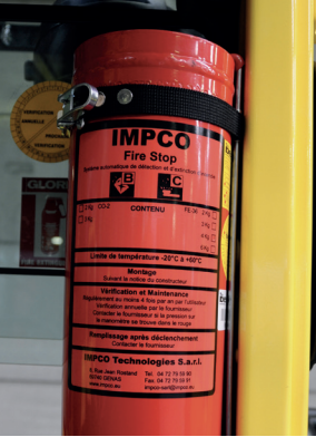 IMPCO Fire Stop is a reliable automatic fire extinguishing system that helps prevent damage to high-value vehicles with thermal or electric engines such as forklifts, airport tractors, construction equipment and generators.