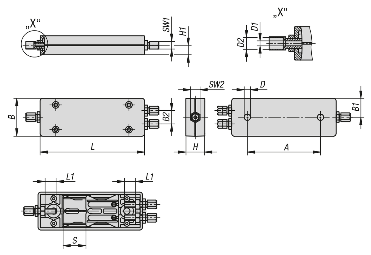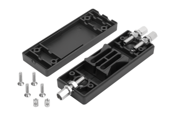 Two mounting holes for countersunk screws enable flexible mounting. Thanks to the width of the housing and the position of the mounting holes, mounting on 40 mm aluminium profiles using M8 cleats can be envisaged without any problems.