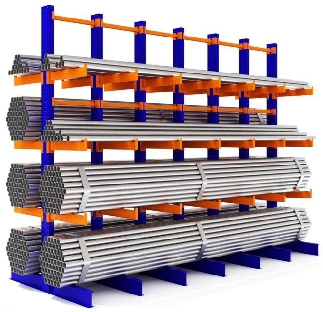 Often used in retail for displaying items, and even more frequently in storage spaces (such as warehouses), the main characteristic of the Cantilever racking type is its simplicity of installation while being robust and accessible. Load handling can be carried out manually for light loads or using forklifts and suitable equipment for heavy loads.