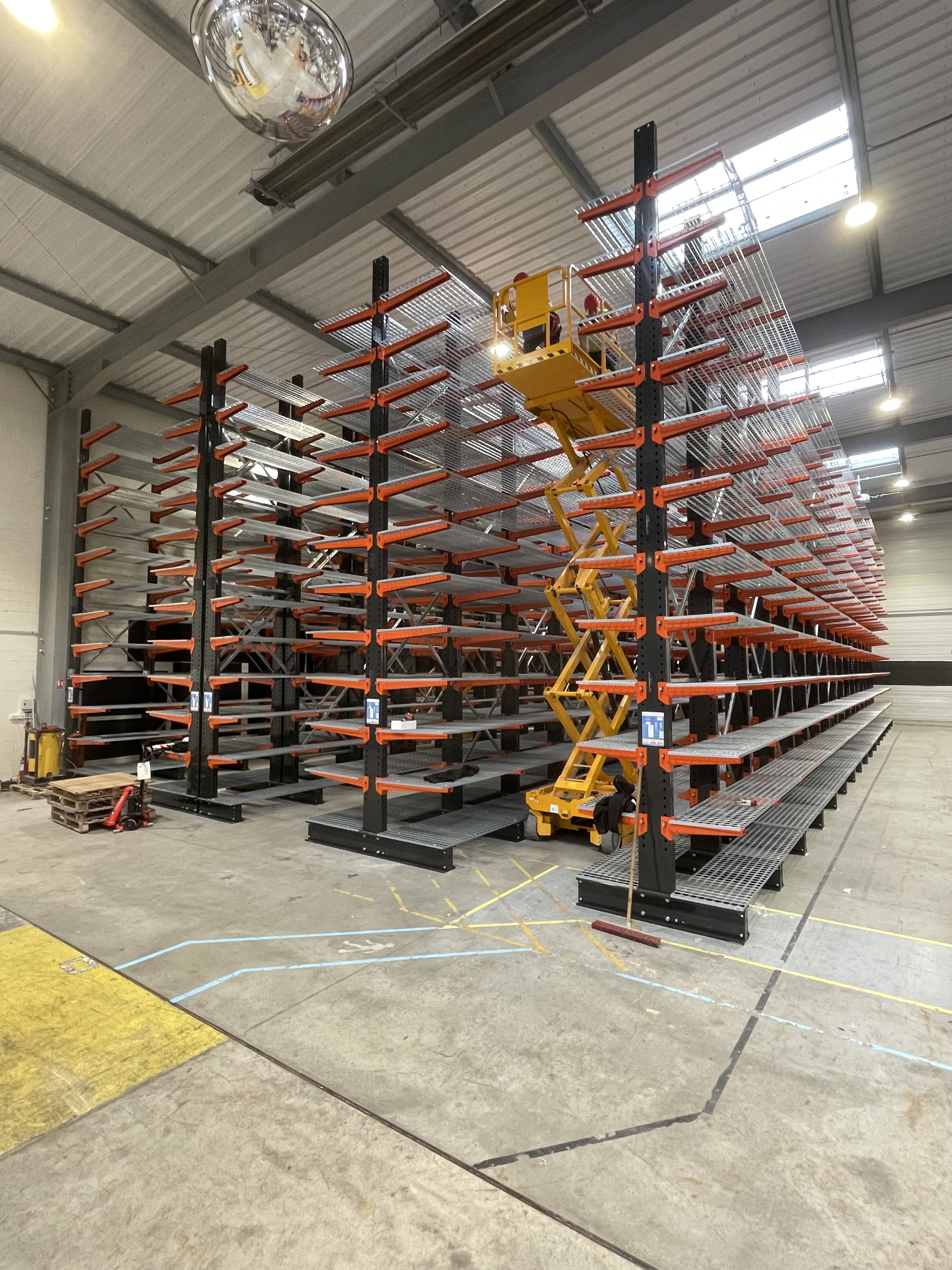 Available in single or double sided, the Cantilever stands out from other storage systems thanks to its raised and suspended steel shelves in cantilever, designed to store bulky loads of all types. Indoors and outdoors, it optimizes the storage space dedicated to long, heavy and non-palletizable loads such as profiles, boards, joists, beams, reinforcing bars, chains, etc.