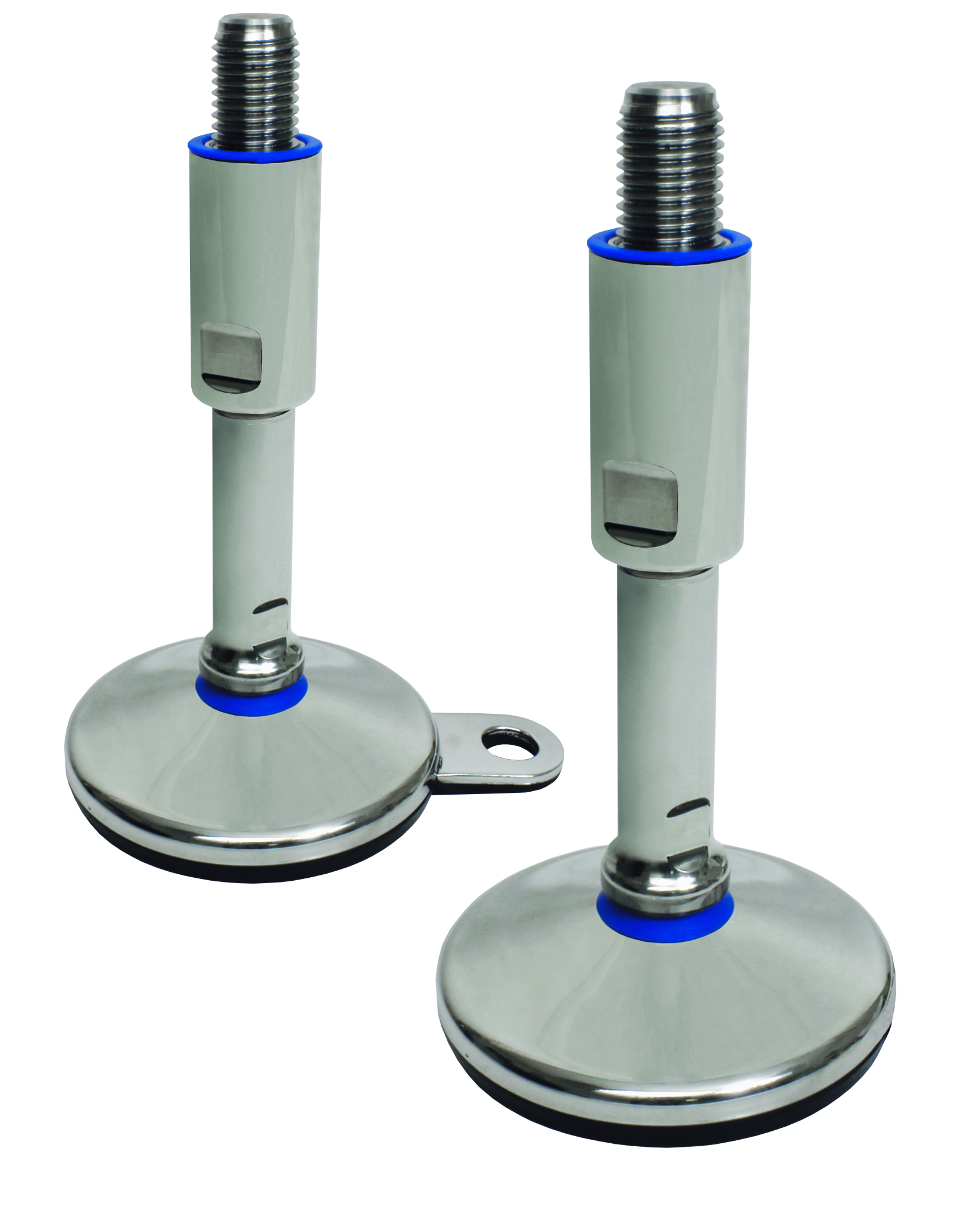 ENGRENAGES HPC enriches its range of machine feet with articulated oscillating stainless steel feet to Standard 3A. This standard, specially designed for the dairy, food and pharmaceutical industries, meets the strict hygiene rules of these sectors of activity. These innovative feet are smooth. The wiper seal located between the rod and the nut around the ball joint helps prevent dirt accumulation and water retention. They are therefore perfect for washing with water and detergents. Offered in 2 versions: with or without fixing lugs, the compatible cap nut (with gasket) is also available to ensure the system is watertight.