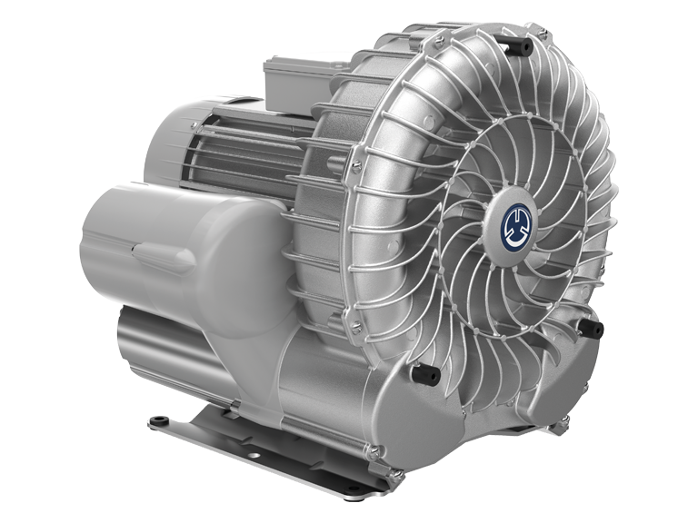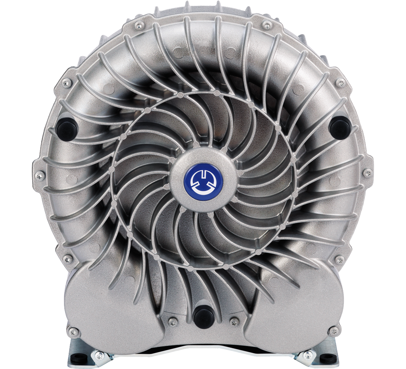 Side channel blowers contain a non-contact, fast rotating impeller inside a blower housing. On both sides of the impeller, there are two separate ring-shaped side channels with the housing. The rotating impeller draws air in from the inlet side, accelerates the air or gas inside the housing, and then discharges it from the outlet side once it is fully pressurized.