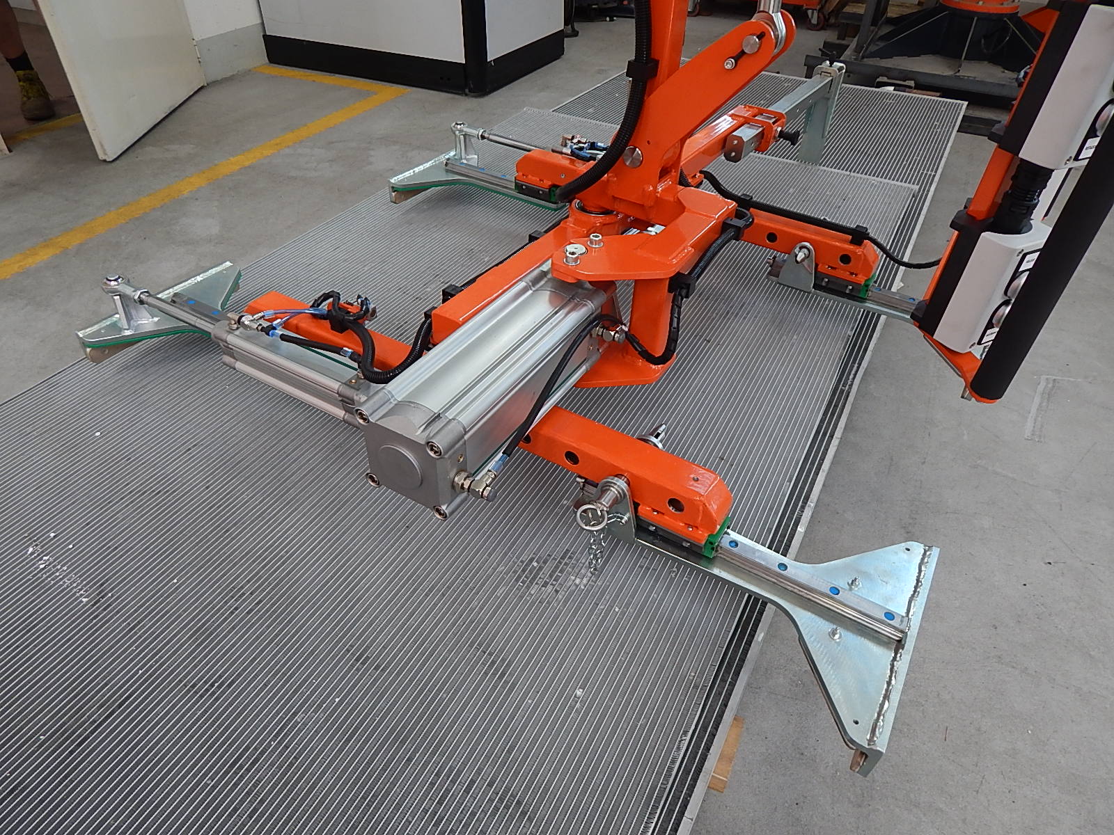 Sliding suspended manipulator model MIRUS 300, suitable for handling exchangers of different sizes.