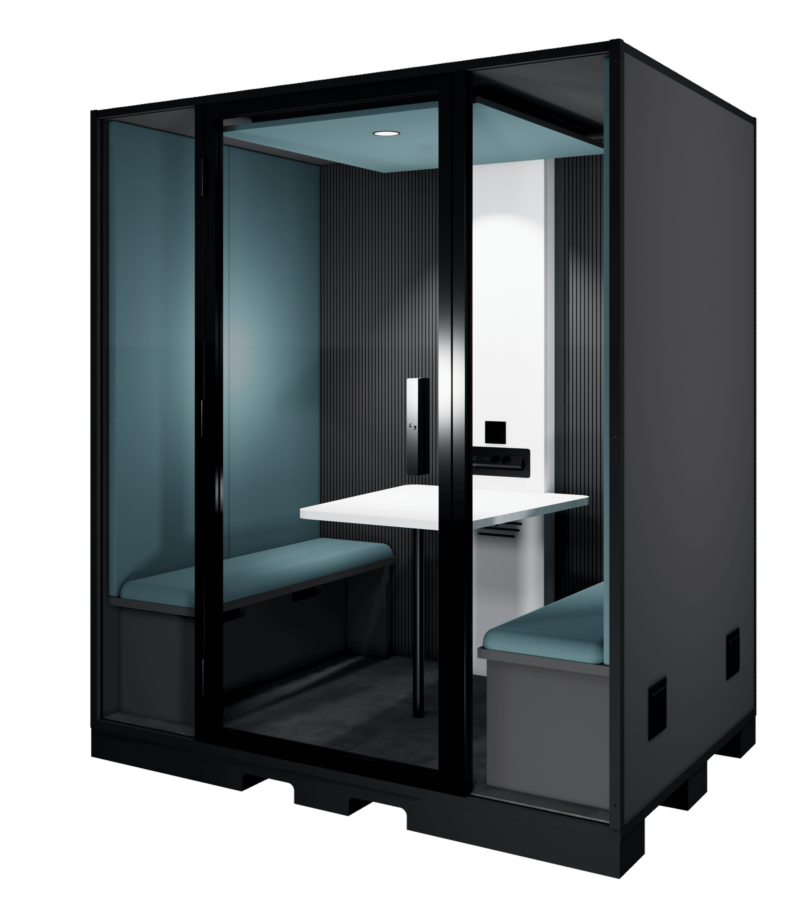 The Blabla Quattro Indus is an acoustic booth designed for industrial environments and workshops, where ambient noise can harm the concentration and well-being of teams.