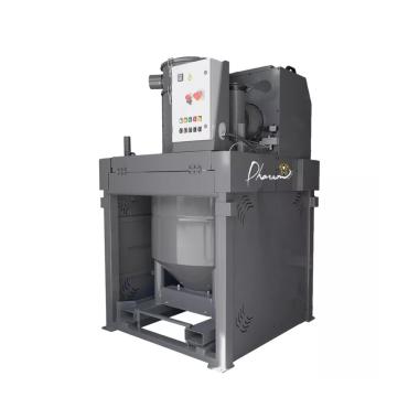 The filtration system is based on an antistatic TEFLON-treated polyester bag filter , class M 1µ, which guarantees optimal efficiency. This filter provides a filtering surface area of 120,000 cm².
