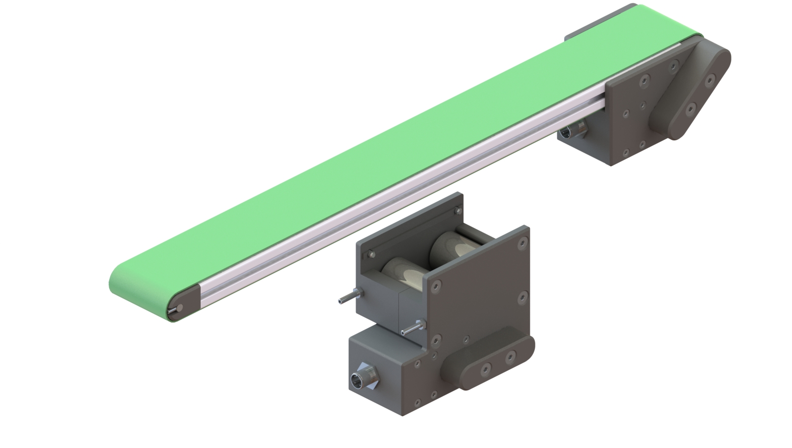 You can modulate the conveying speed by potentiometer or by a programmable input - Width 40 - 60 - 80 mm - Center distance 300 to 2000 mm - Drive: 24V DC power supply, stepper geared motor