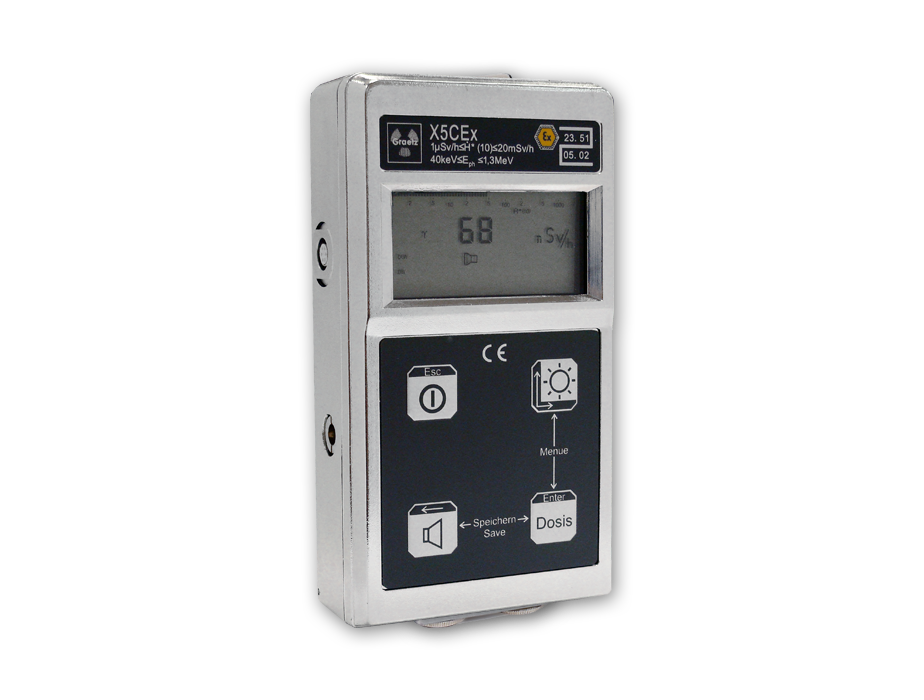 - Dose equivalent rate: 0 nSv/h to 20 mSv/h - Dose equivalent: 0 nSv to 10 Sv - Energy: 40 keV - 1.3 MeV for X5CEx and 75 keV - 1.3 MeV for the probe - Alarm thresholds of dose rate: 4 programmable - Dose equivalent alarm thresholds: 4 programmable - Temperature: -20°C to +40°C - Power supply: 9 V battery supplied - ATEX: II 2G EEx ib IIB T6 and I M2 EEx ib I