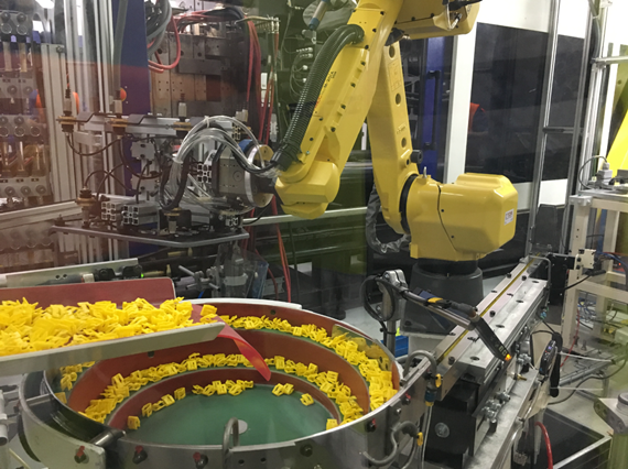 TDR has developed flexible solutions for loading and unloading on an injection molding machine