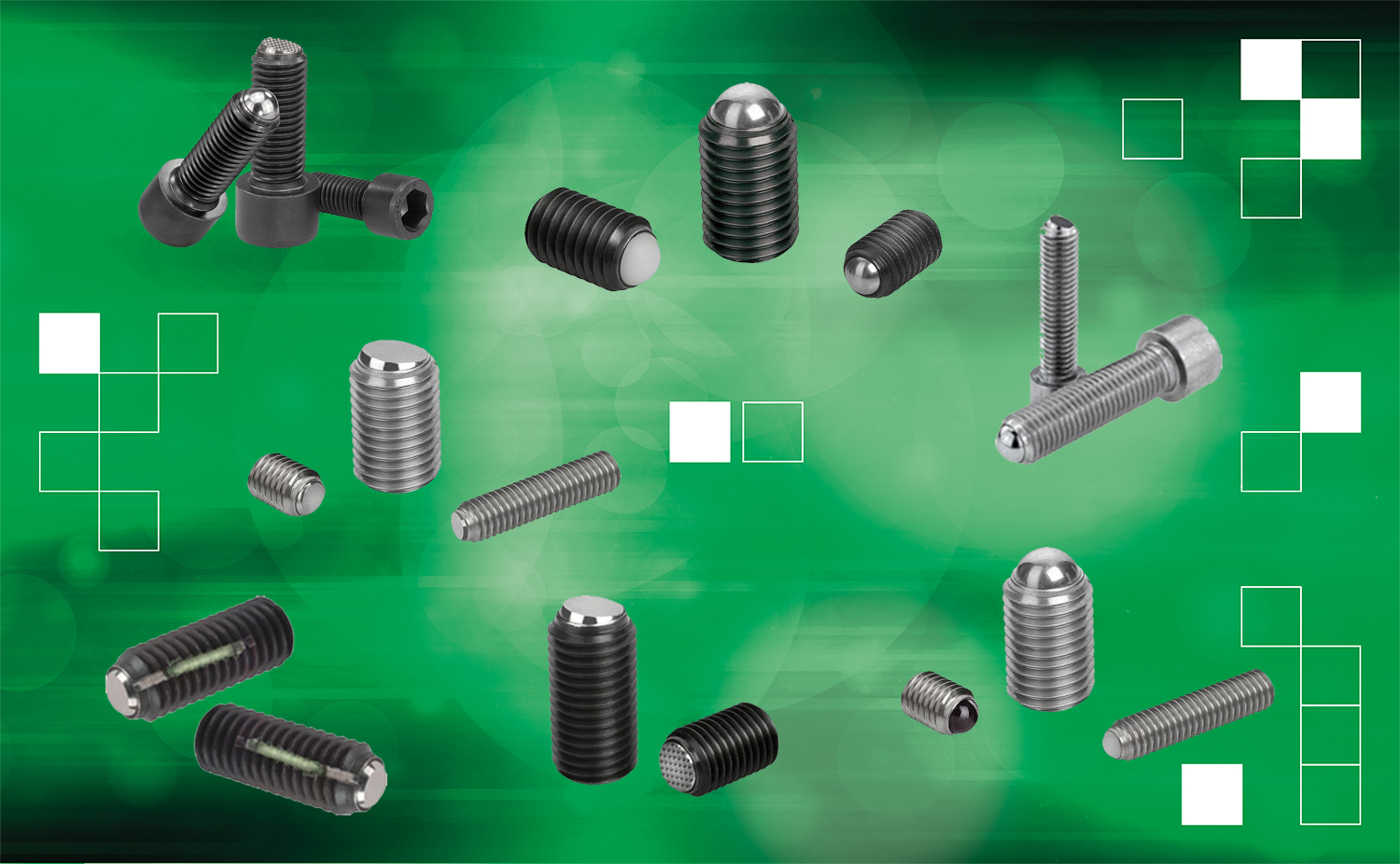 - Adjustable ball screw with CHC or HC head Material: Screw in treatment steel. or stainless steel Bearing steel ball. Finish: Screws: strength class 10.9, black. Ball: treated and polished. - Headless adjustable ball screw with solid ball or with flat, with LONG-LOK security: Material: Screw in treatment steel, resistance class 10.9. Bearing steel ball. LONG-LOK nylon thread lock. Finish: Black screw. Ball treated, polished. - Swivel ball screw with HC head, short model: Material: Screw: treatment steel. Ball: bearing steel. Finish: Screws: resistance class