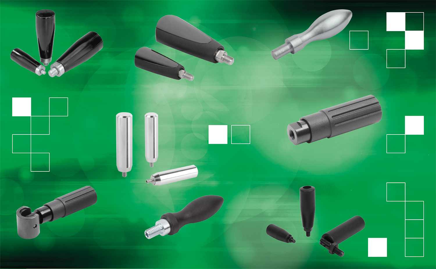 - Revolving handle similar DIN 98 form E steel, aluminum or stainless steel
