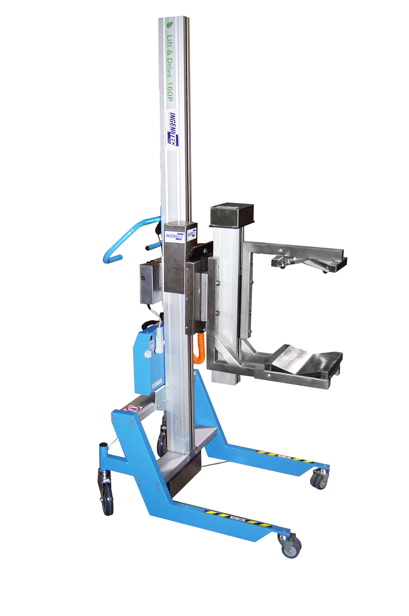 This handling trolley consists of clamps that can carry loads weighing up to 110 kg. It mainly consists of two large clamps, a mast and an ergonomic handlebar. It mainly consists of two large clamps, a mast, a remote control and an ergonomic handlebar.