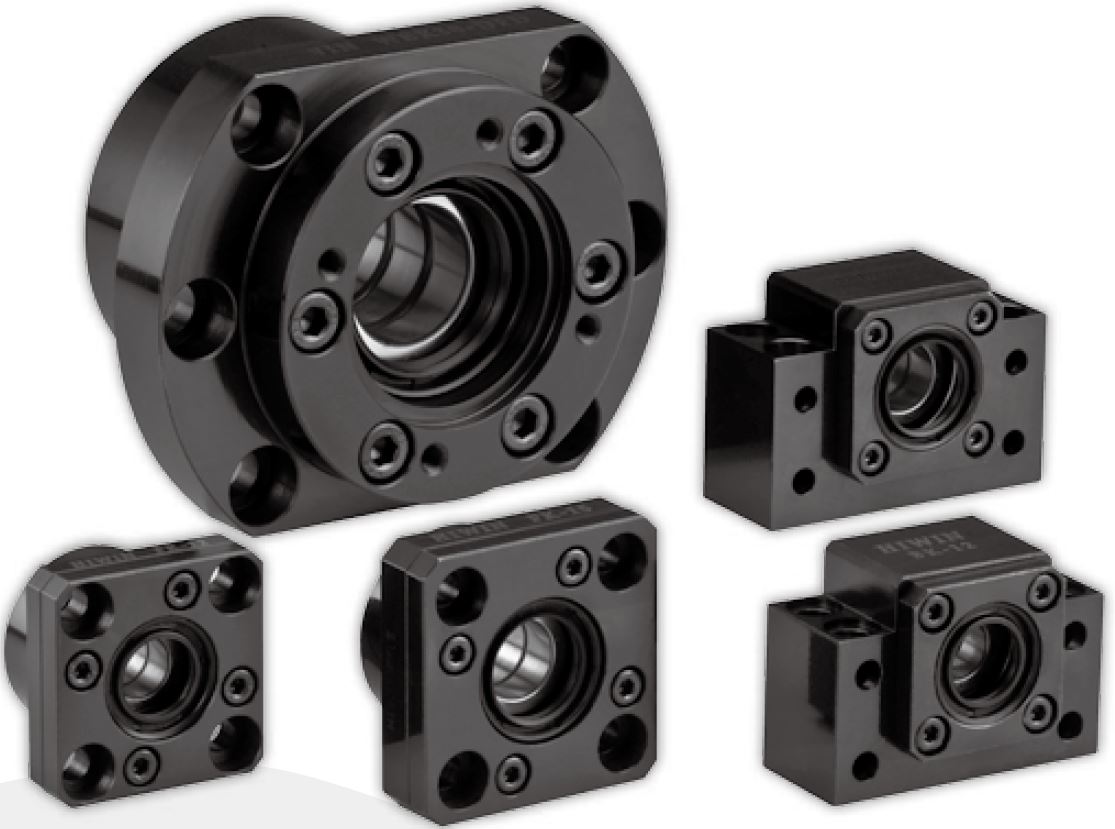 Fixed bearings, floating bearings (BK/BF - FK/FF - EK/EF - AK/AF) bearings for heavy loads (WBK series). Nut Holders: MGD Ball Screw Bearings: BSB