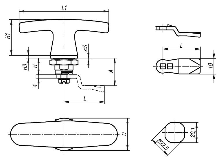 Quarter-turn lock with T-handle Hygienic DESIGN