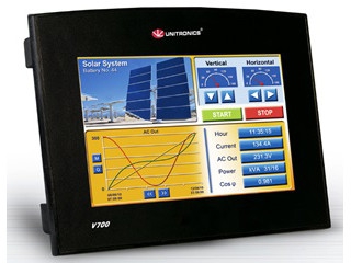 The new must-have in Unitronics' Vision range, the V700 has a 7'' 16:9 flat touch screen with 800x480 resolution (65 million colours) and IP66-certified flat front panel. It allows manufacturers to have a product with a modern look for a very competitive price. With a very compact format, the V700, allows an immediate gain, in cost, in development, in wiring and in size. This integrated PLC+HMI offers numerous functionalities and in the interests of ever-increasing connectivity, it even has an integrated Ethernet port with 8 possible simultaneous connections! This PLC also has numerous communication possibilities and is programmed with a single integrated programming environment, VisiLogic: software that is easy to use, complete and FREE!