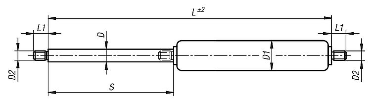 norelem gas springs are closed, maintenance-free hydropneumatic adjustment elements. The spring force F1 results from the internal pressure of the cylinder resulting from the filling fluid, nitrogen. The gas springs have a pressure adjustment valve in the end cap, this valve allows the pushing force of the cylinder to be reduced. In the gas spring this pressure acts on the cross-sectional area of the piston rod. The force of the gas spring increases with the diameter of the piston rod and the volume of the gas spring. norelem gas springs contain an oil charge for lubrication and the end position damper.