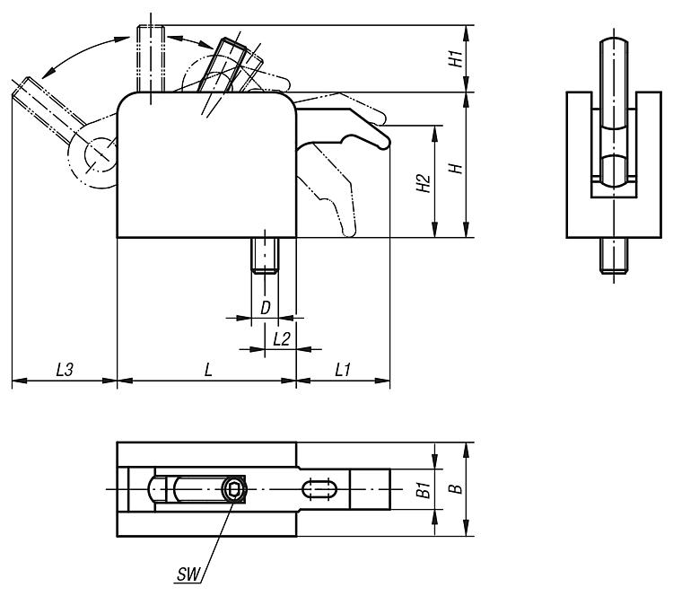 - The norelem compact clamping block is made of aluminum for the body, case-hardened steel for the clamping lever and strength class 10.9 steel for the clamping screw. -Compact clamp block clamp arm retracts fully. -Its clamping force is high as well as secured by a self-locking mechanism and its clamping force is obtained manually without excessive effort