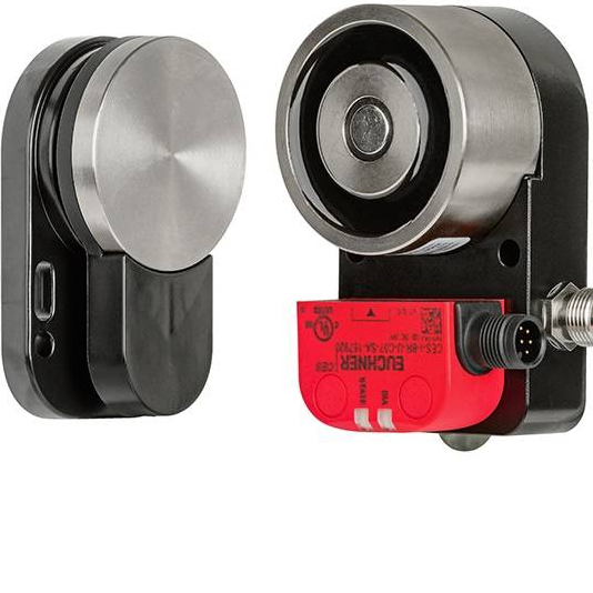 In order to offer even more flexibility, EUCHNER is launching a universal live-locking solution for process safeguarding. Main features: Locking force of 650 N Version with permanent magnet of 30 N (holding) Actuator mounted on ball joint offering an offset of +/- 4° Coil connection by M12 connector LED indication of locking status Can be used 100% of the time Advantages and applications: + Simple assembly + Universality thanks to the multi-compatibility of the range + ASi safety and IO Link compatible with the appropriate switch + Nickel-plated locking surfaces offering great corrosion resistance