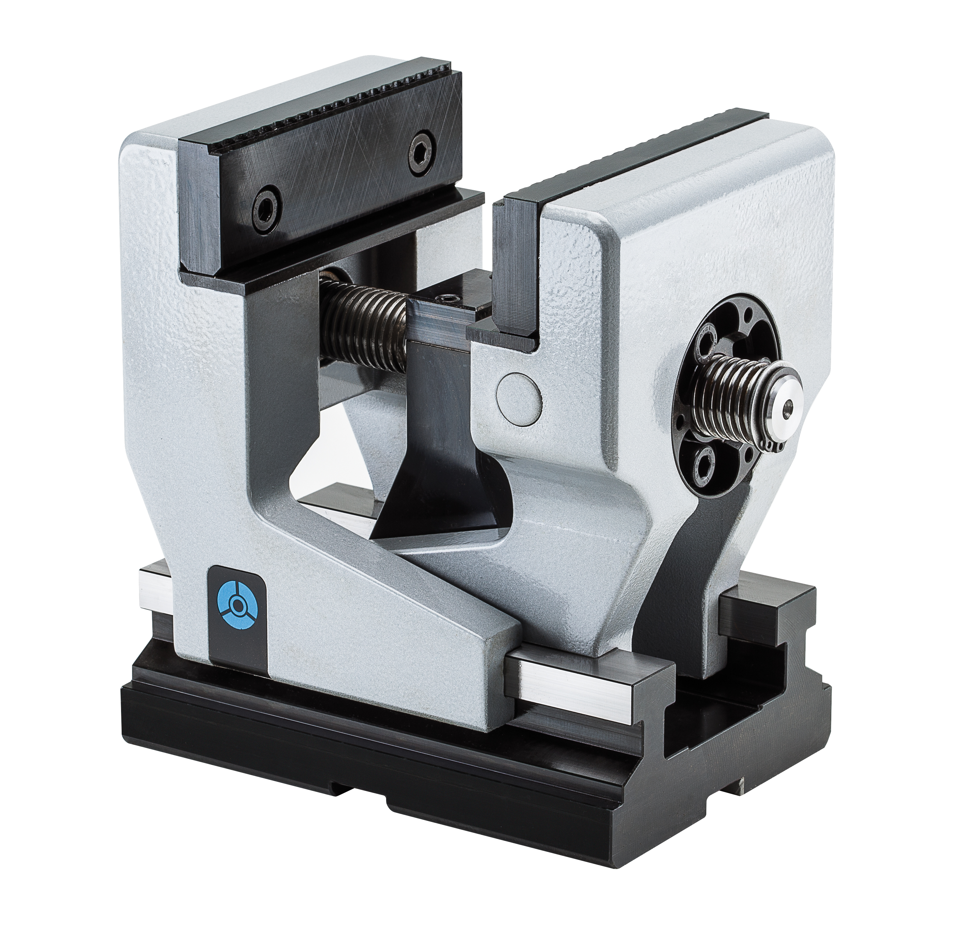 New vice particularly suitable for 5-axis CUs. Completely open design to optimize chip evacuation, helping to keep the vise clean. Use with SKB jaws for machining rough parts, clamped with a h