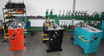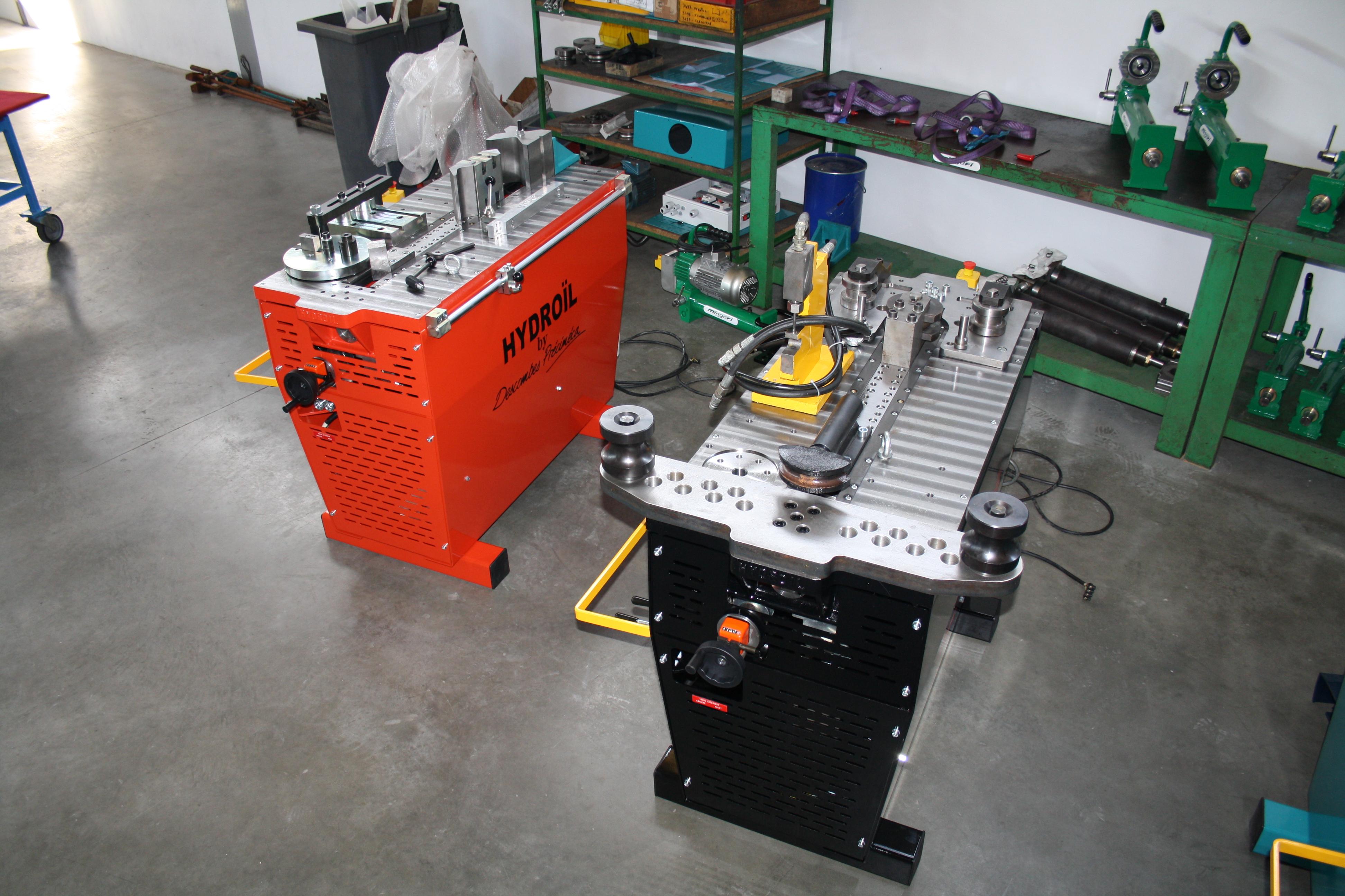 the ADVANTAGES of the HYDROIL press : Up to 4 work stations and 2 control stations, it bends, shears, punches, notches, flares, shrinks, rolls, twists, bends, profiled holes and tubes, executes all forms of flanges, collars, hot bulged holes, works the wire, carries out all operations at the end of the tube, etc.