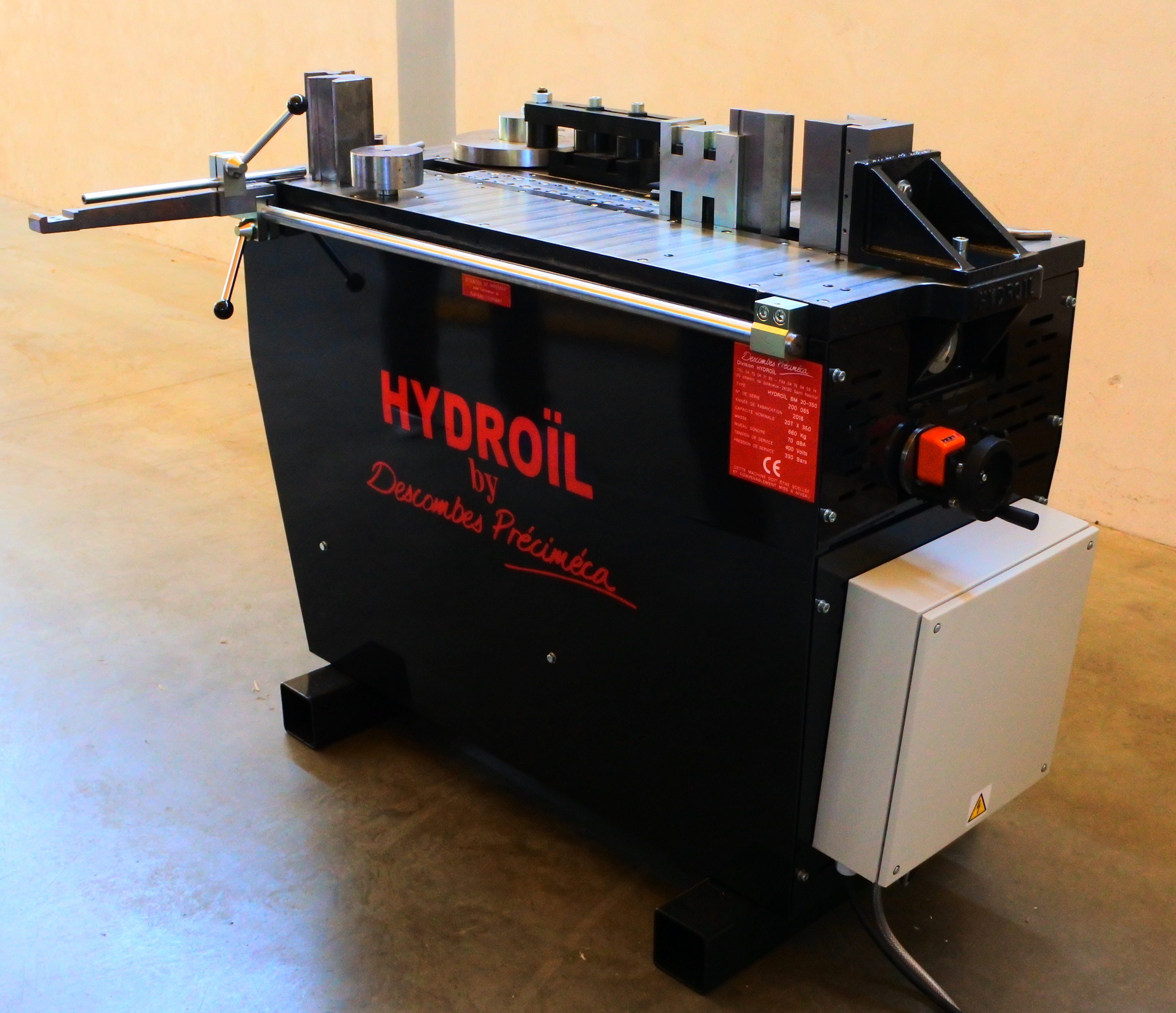 Present in factories manufacturing street furniture, agricultural equipment, leisure and sports as well as in the naval and aeronautical industries, the HYDROIL press has quickly become the “Swiss army knife” of artisan metalworkers and ironworkers. HYDROIL was bought in 2014 by DESCOMBES PRECIMECA from Drôme.