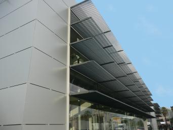 The sunshade grating is an aesthetic element that defines spaces and surfaces, allowing light to naturally illuminate places, while creating playful shapes.