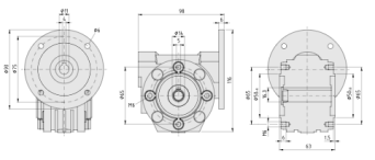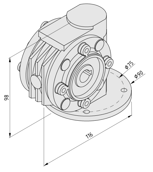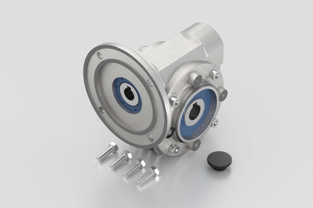 The D14/D11 right-angle gearboxes for the item AC D11 motor are available with six different ratios. The speed of the conveyor belt is therefore adjustable. As a ready-to-connect solution, the gearbox is screwed onto the motor without any machining. The motor attachment kit 8 40 D14 is used to attach gearboxes and motors to the right or left of the conveyor.